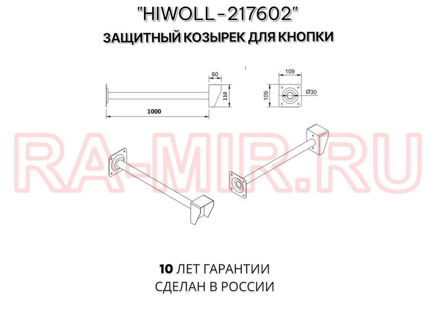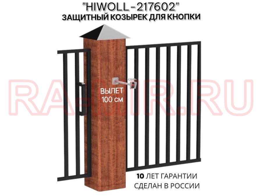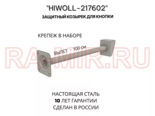 Стальной защитный козырек для кнопок выхода с вылетом от стены 100см "ВЫЗОВКРЕП-217602" серый,8х11см