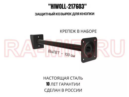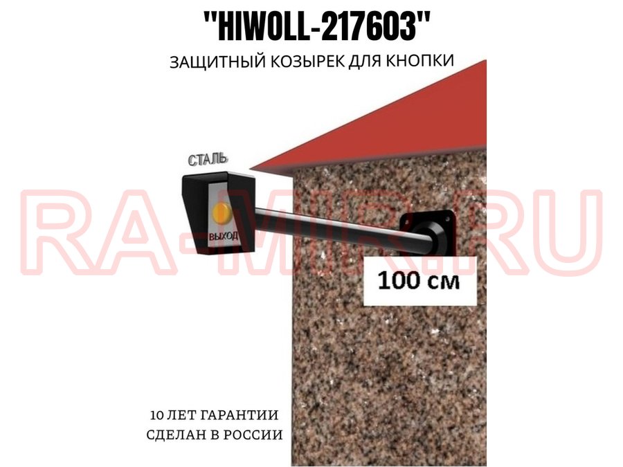 Заказать звонокСтальной защитный козырек для кнопок выхода с вылетом от стены 100см "ВЫЗОВКРЕП-217603"черный,8х11см