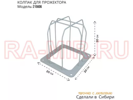 Заказать звонокКолпак кожух для прожектора или лампы освещения со скосами 20х20см "POHER-215606" вылет 20см, белый