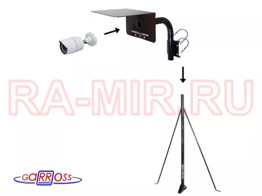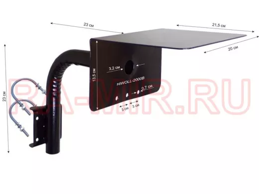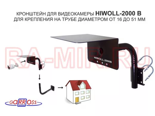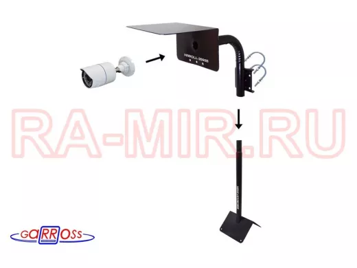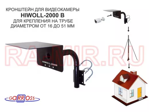 Заказать звонокКронштейн "HIWOLL-2000B-121405" чёрный с хомутами и козырьком на мачту для видеокамеры и прожектора