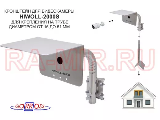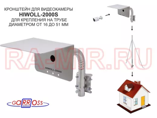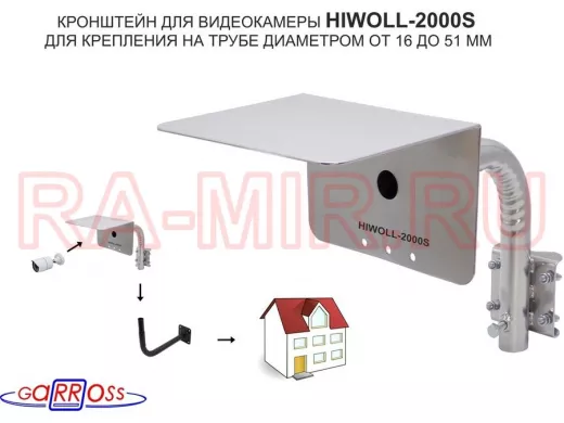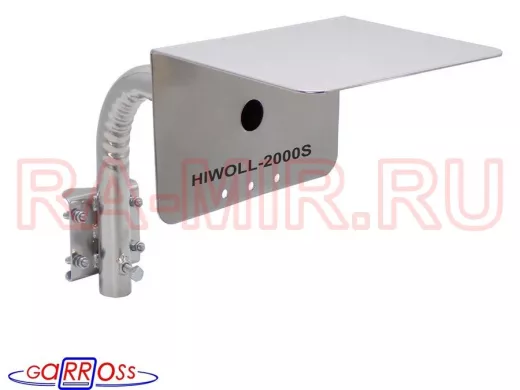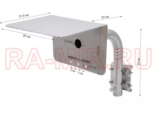 Заказать звонокКронштейн "HIWOLL-2000S-201358" серебристый с хомутами и козырьком на мачту для камеры и прожектора