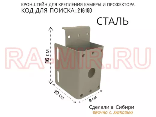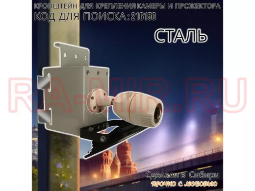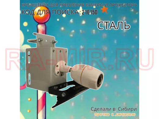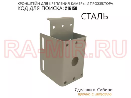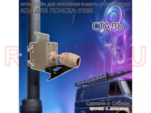 - Универсальный усиленный кронштейн предназначен для крепления прожектора или камеры на трубе диаметром от 15 до 51мм или на столбе.