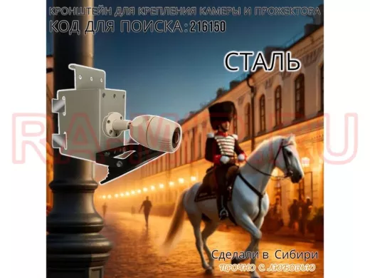 Заказать звонокКронштейн универсальный на трубу или столб для камеры или прожектора "ПРОЖЕКРЕП-216150" сталь, серый