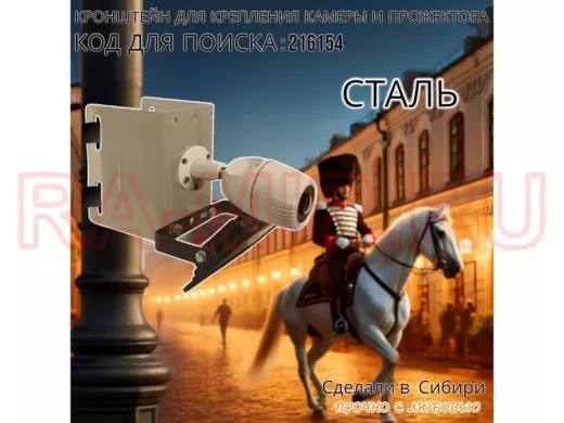 - Кронштейн позволяет быстро зафиксировать прожектор или камеру наблюдения на столб или трубу.