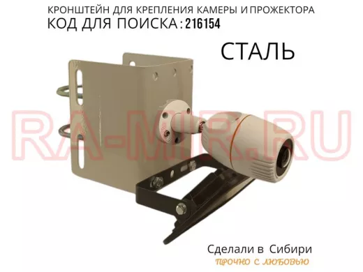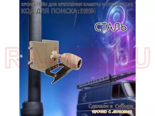- Универсальный усиленный кронштейн предназначен для крепления прожектора или камеры на трубе диаметром от 15 до 51мм или на столбе.
