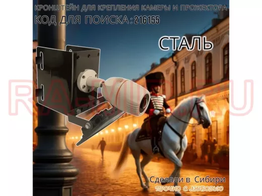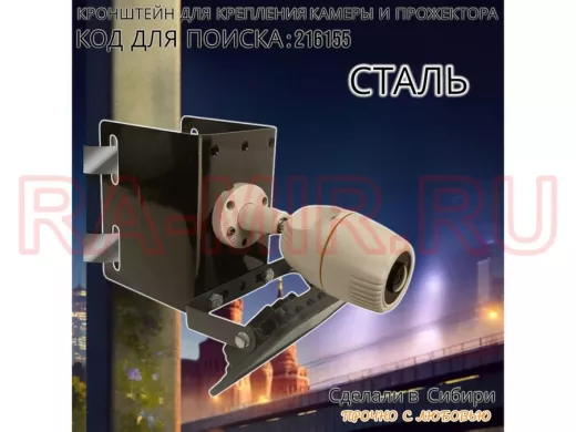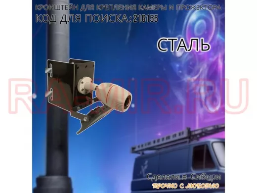 - Универсальный усиленный кронштейн предназначен для крепления прожектора или камеры на трубе диаметром от 15 до 51мм или на столбе.