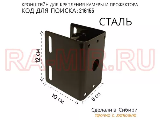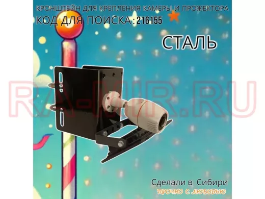 - Кронштейн позволяет быстро зафиксировать прожектор или камеру наблюдения на столб или трубу.
