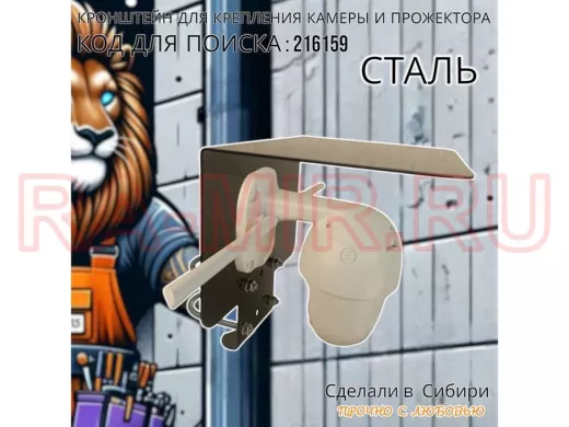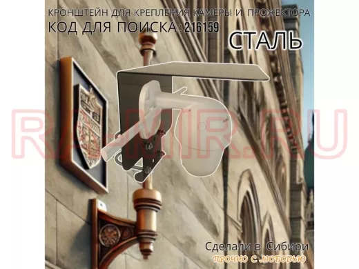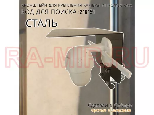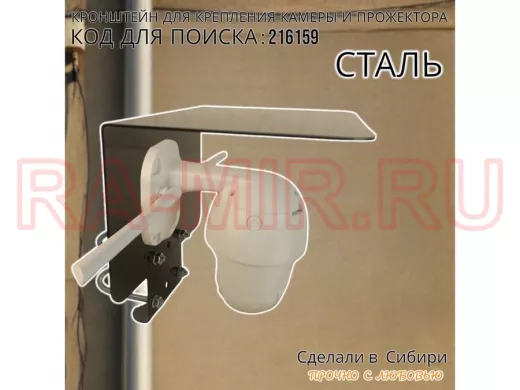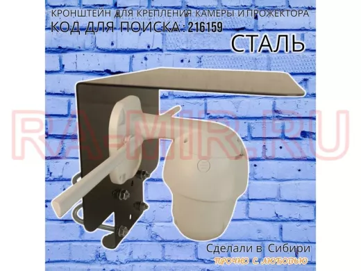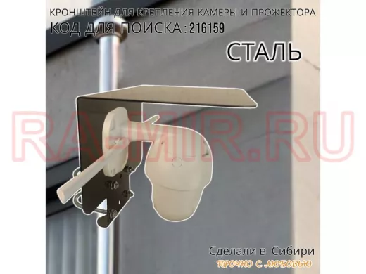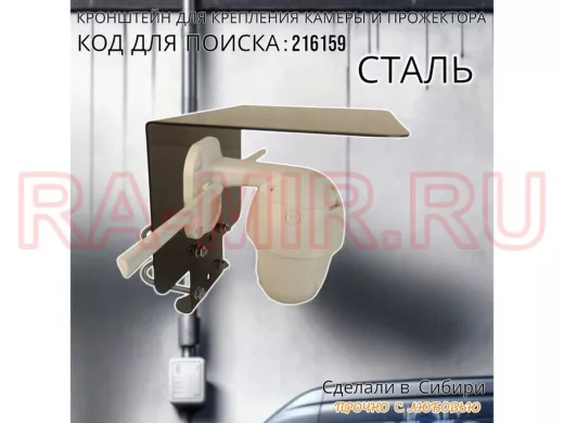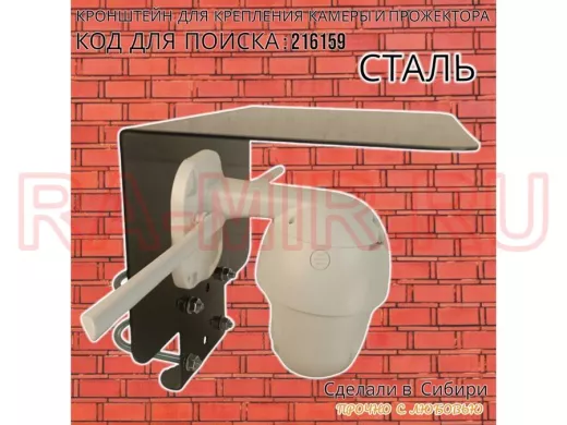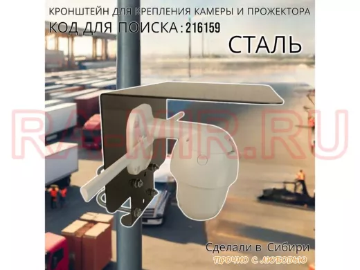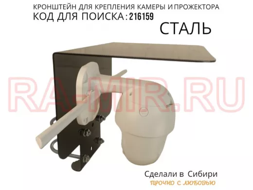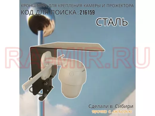 Заказать звонокКронштейн с козырьком на трубу для камеры и прожектора "ПРОЖЕКРЕП-216159" сталь, два хомута, черный