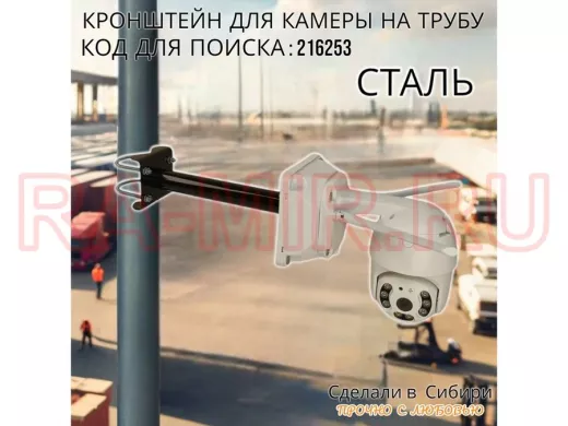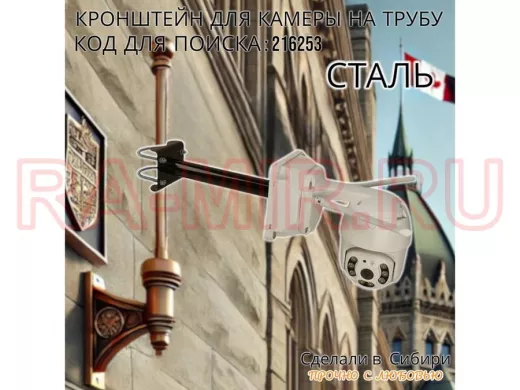 - Кронштейн предназначен для крепления поворотной или цилиндрической камеры на трубу.