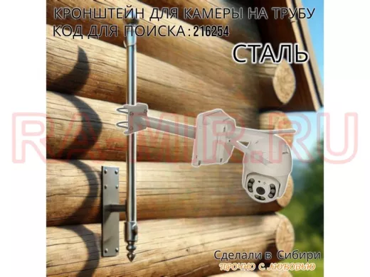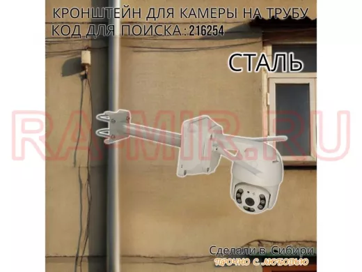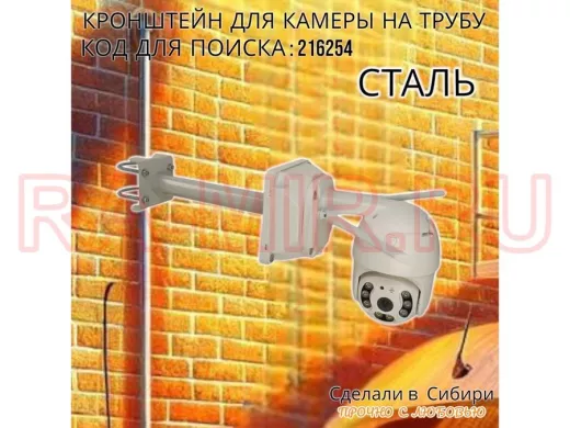 - Кронштейн предназначен для крепления поворотной или цилиндрической камеры на трубу.