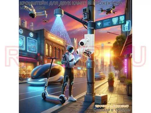 Заказать звонокКронштейн для двух камер и прожектора на столб белый "IPAHD-201W-215393" под СИП-ленту, вылет 80мм