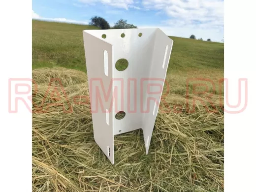 - Кронштейн позволяет быстро зафиксировать прожектор на столбе при помощи ленты или хомутов, не сверля сам столб.