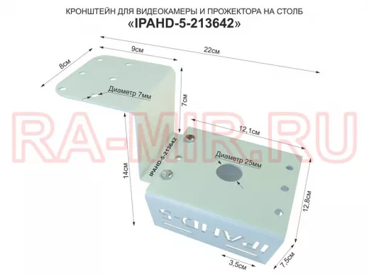 - Кронштейн для одной камеры и дополнительная пластина для прожектора в комплекте, крепится при помощи СИП ленты монтажной на квадратный или круглый столб. Подходит для любых камер: HickVision, HiWatch, Dahua, RVI, Орбита и др.