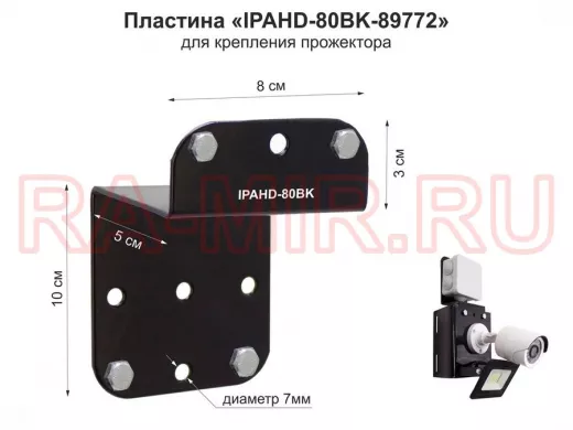 Пластина "IPAHD-80BK-89772" для прожекторов на кронштейны серии "IPAHD" и "HIWOLL", 9 отверстий 7мм