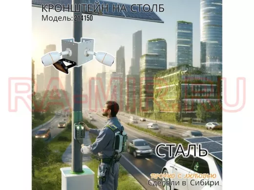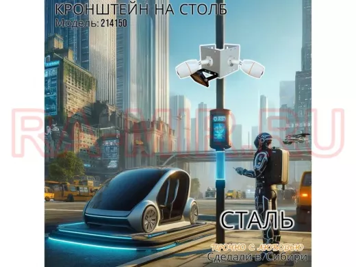 - Кронштейн для двух камер и прожектора, крепится при помощи СИП ленты монтажной на квадратный или круглый столб.
