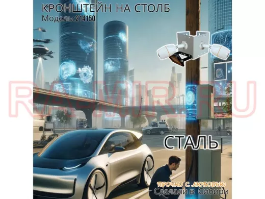 - Кронштейн позволяет быстро зафиксировать камеры видеонаблюдения или прожектор на столбе, не сверля его.
