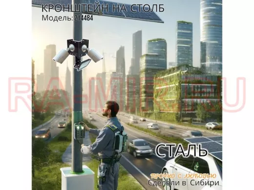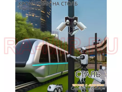 - Кронштейн для двух камер и прожектора, крепится при помощи СИП ленты монтажной на квадратный или круглый столб.