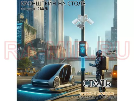 - Кронштейн для двух камер и прожектора, крепится при помощи СИП ленты монтажной на квадратный или круглый столб.