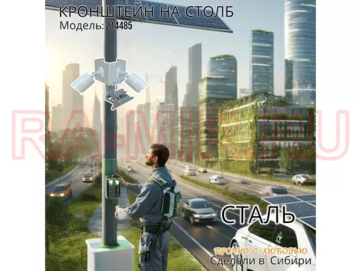 - Кронштейн позволяет быстро зафиксировать камеры видеонаблюдения или прожектор на столбе, не сверля его.