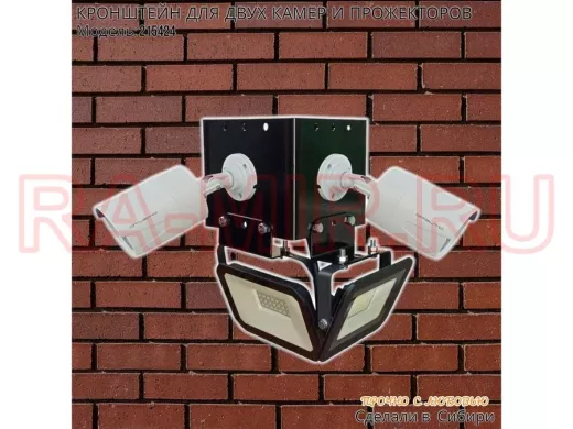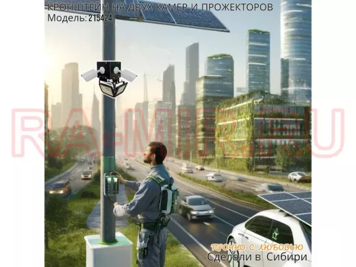 - Кронштейн для двух камер и прожектора, крепится при помощи СИП ленты монтажной на квадратный или круглый столб.
