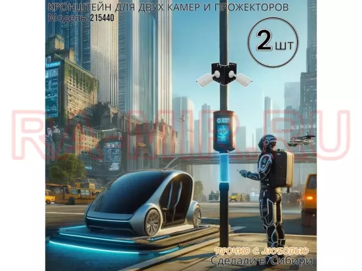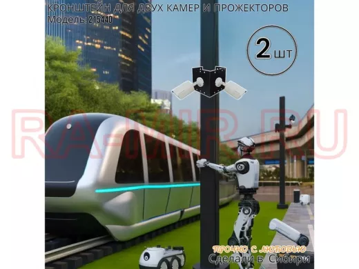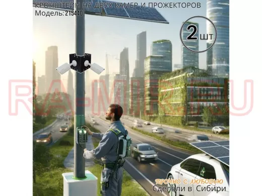 - Кронштейн для двух камер и прожектора, крепится при помощи СИП ленты монтажной на квадратный или круглый столб.