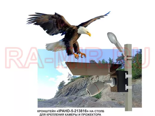 Заказать звонокКронштейн для камеры и прожектора на столб с козырьком "IPAHD-5-213816" черный, под СИП-ленту