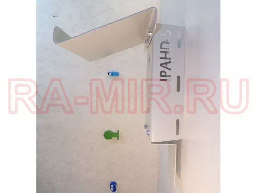 - Кронштейн укомплектован козырьком и площадкой для монтажной коробки