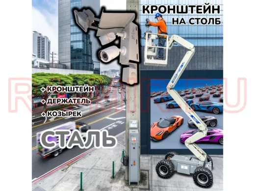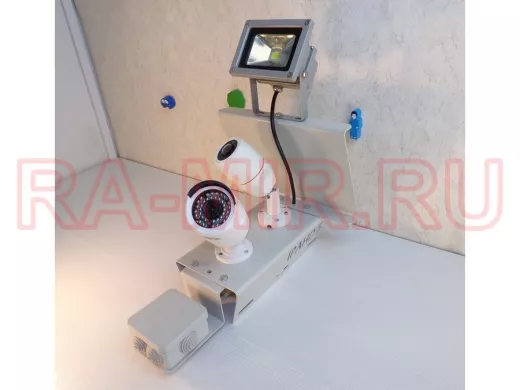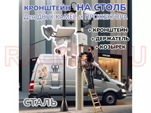 Заказать звонокКронштейн для двух камер и прожектора на столб с козырьком и пластиной серый "IPAHD-5-214548"