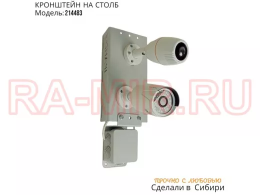 Заказать звонокКронштейн для двух камер и прожектора на столб с пластиной для гермокоробки серый IPAHD-5-215635
