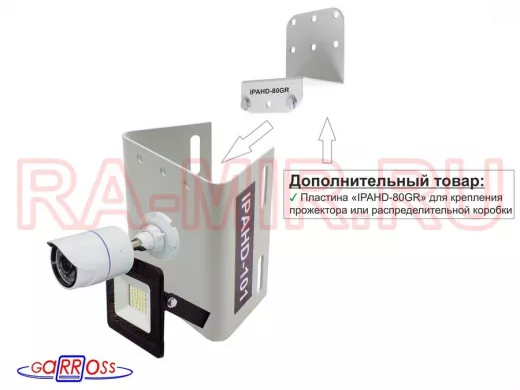 - Кронштейн "IPAHD-STOLB-101S" для 1 камеры и прожектора, крепится при помощи СИП ленты монтажной на квадратный или круглый столб. Подходит для любых камер: HickVision, HiWatch, Dahua, RVI, Орбита и др.