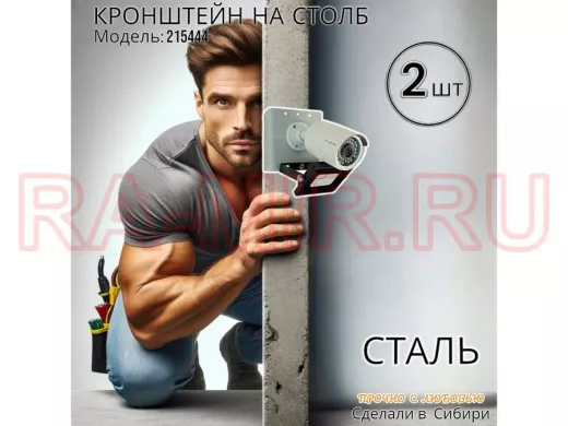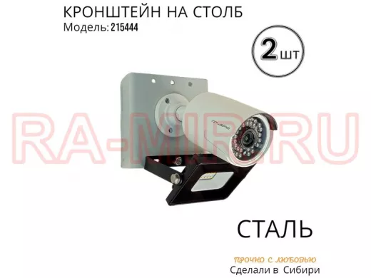 - Кронштейн для 1 камеры и прожектора, крепится при помощи СИП ленты монтажной на квадратный или круглый столб. Подходит для любых камер.