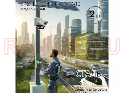 Заказать звонокНабор из 2 шт. Кронштейн для 1 камеры и прожектора на столб серый "IPAHD-101GR-215444" под хомут
