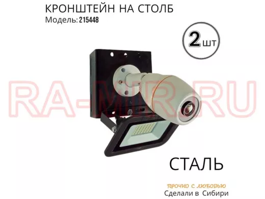 - Кронштейн для 1 камеры и прожектора, крепится при помощи СИП ленты монтажной на квадратный или круглый столб. Подходит для любых камер.