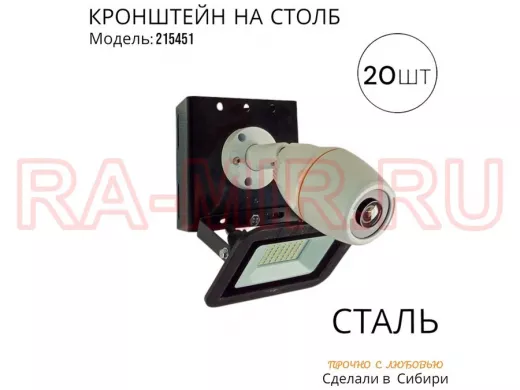 - Кронштейн для 1 камеры и прожектора, крепится при помощи СИП ленты монтажной на квадратный или круглый столб. Подходит для любых камер.