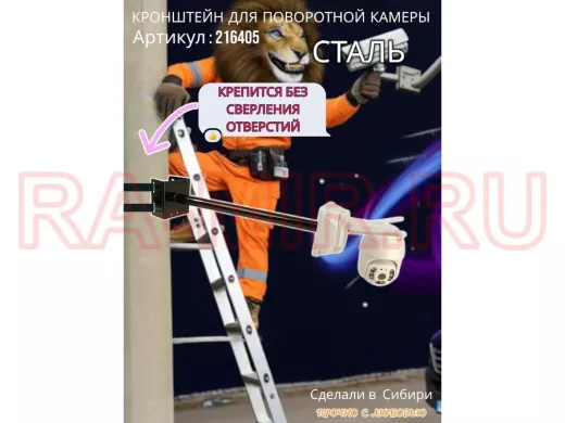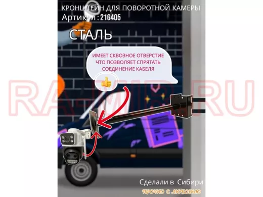 - Стальной кронштейн позволяет вынести камеру от столба на 50 см.