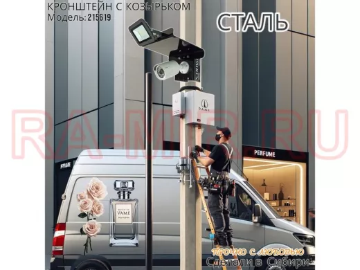 Заказать звонокКронштейн для камеры и прожектора на столб с козырьком вверх черный "IPAHD-5-215619"