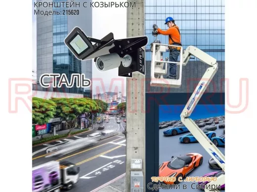 - Кронштейн позволяет быстро зафиксировать камеру и прожектор на столбе, не сверля его.