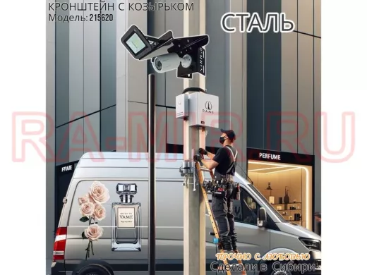 Заказать звонокКронштейн для камеры и прожектора на столб с козырьком и желобком черный "IPAHD-5-215620"