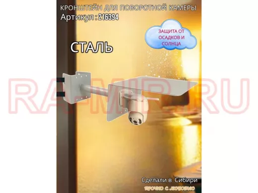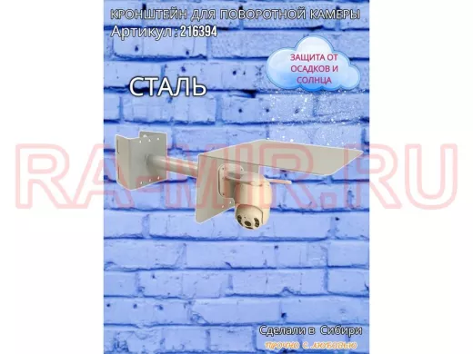 Заказать звонокКронштейн на столб для поворотной камеры с козырьком и вылетом 25 см "HIWOLL-216394" серый, сталь