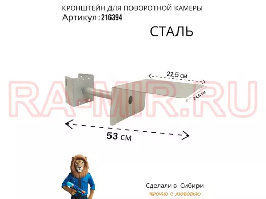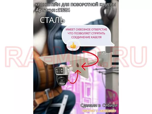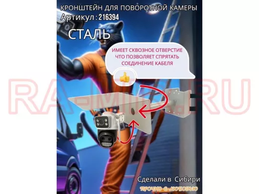 - Стальной кронштейн позволяет вынести камеру от столба на 25 см.