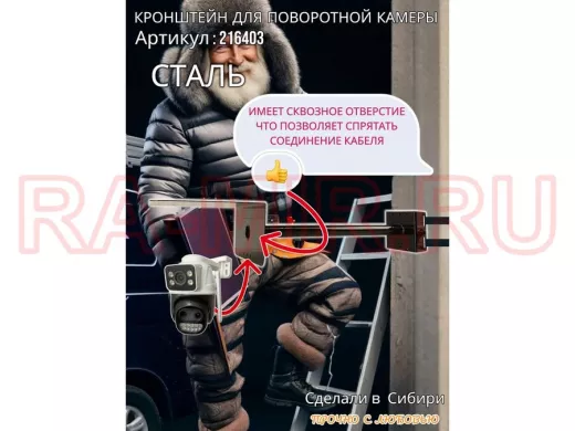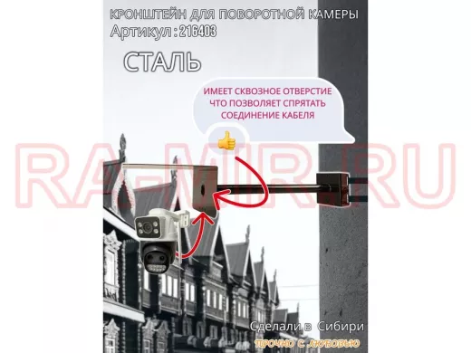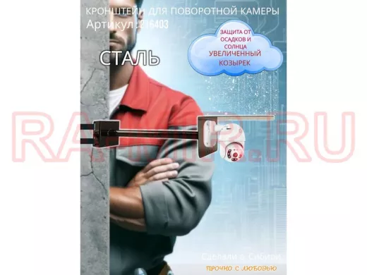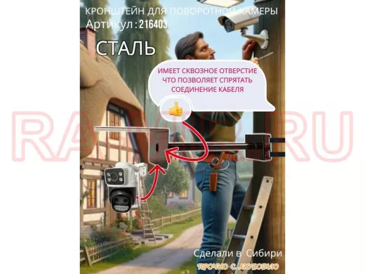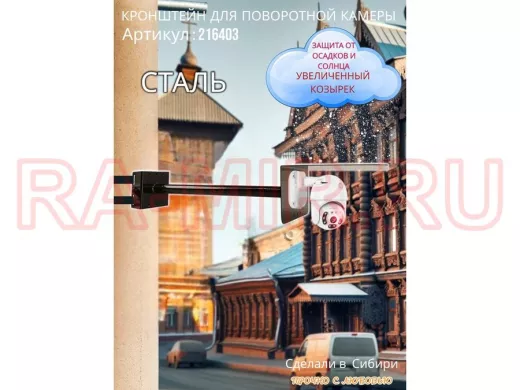 - Стальной кронштейн позволяет вынести камеру от столба на 50 см.