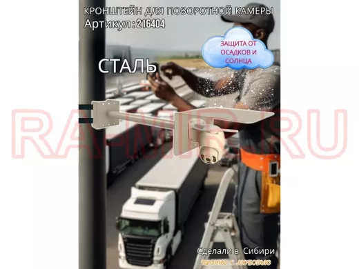 Заказать звонокКронштейн на столб для поворотной камеры с козырьком и вылетом 50 см "HIWOLL-216404" серый, сталь