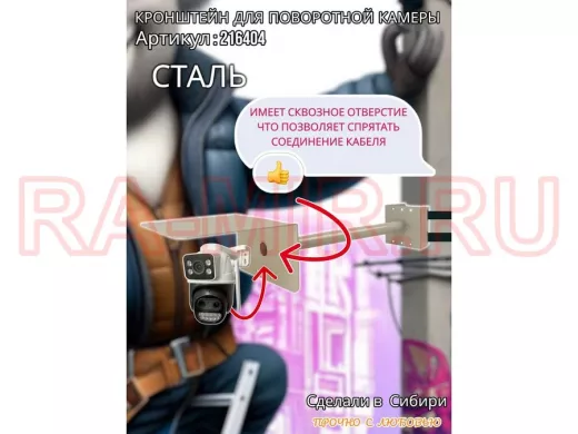 - Стальной кронштейн позволяет вынести камеру от столба на 50 см.