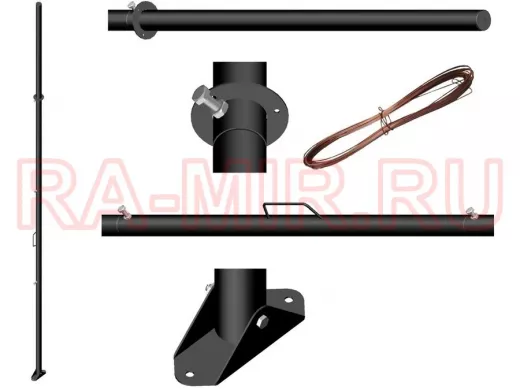 - "МАЧТА УСИЛЕННАЯ - 4,5М С РУЧКОЙ" ЧЁРНАЯ (с растяжкам и подпятником) мачта высотой 4,5 метра предназначена для крепления антенных комплексов или нескольких антенн с увеличенной полезной нагрузкой на наклонной и плоской крыше