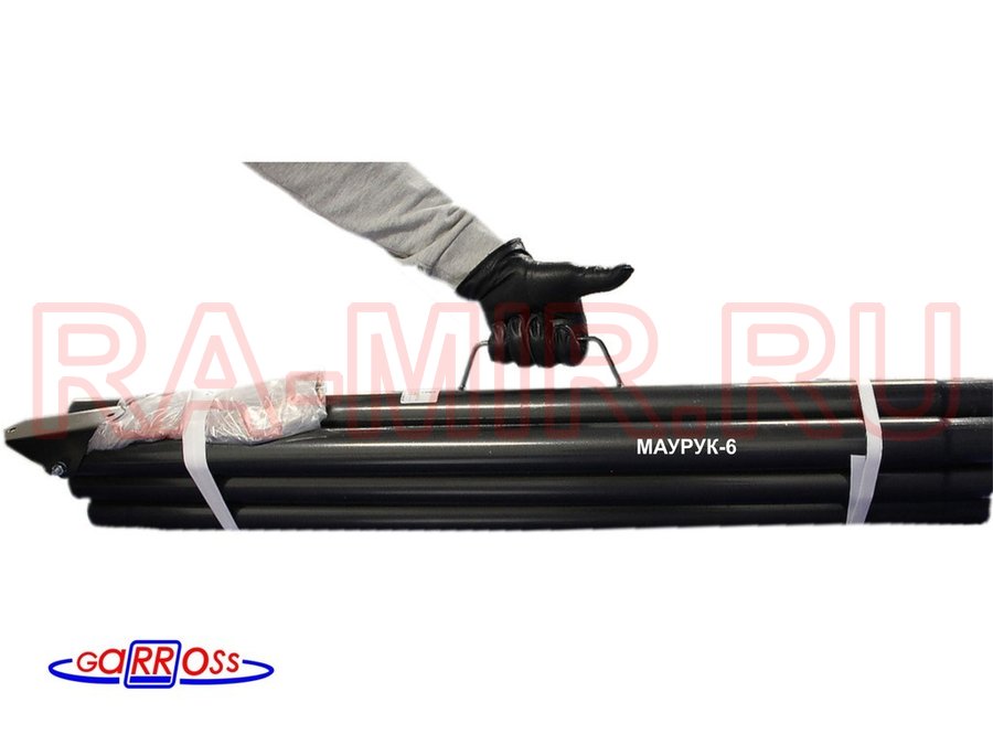 Мачта усиленная с ручкой 6,5метров, обжата "Маурук-21442" чёрная, растяжк. и подпят., 51мм, 6 секций