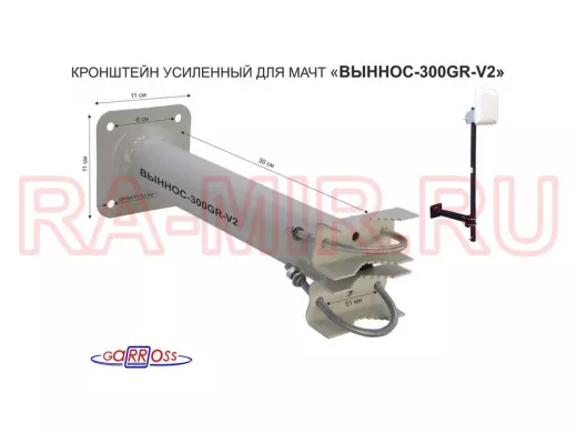 Заказать звонокКронштейн усиленный для мачт, вылет 0,3м "ВЫННОС-300GR-V2-113981" серый с 1отв.25мм для гофры, 51мм