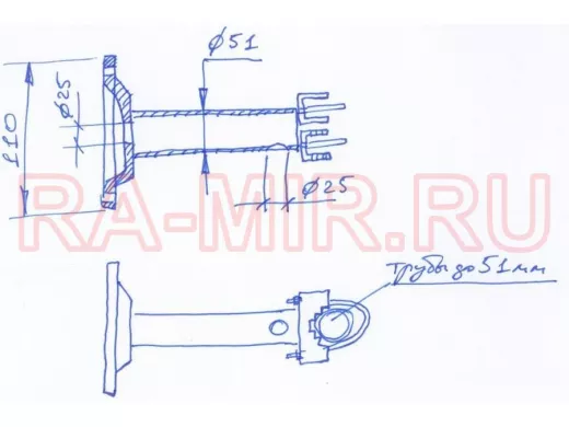 Диаметр трубы кронштейна - 51 мм