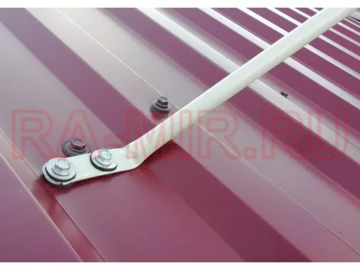 - Наличие жёстких растяжек в виде трубок и качающегося основания позволяют крепить кронштейн-мачту на кровле с различным наклоном.