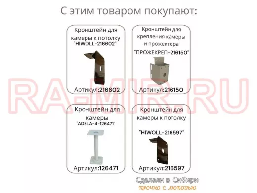 Заказать звонокКронштейн для поворотной камеры к потолку "HIWOLL-216598" серый, сталь