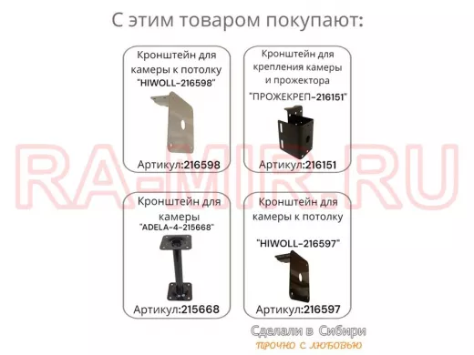 Заказать звонокКронштейн для поворотной камеры к потолку усиленный "HIWOLL-216602" черный, сталь
